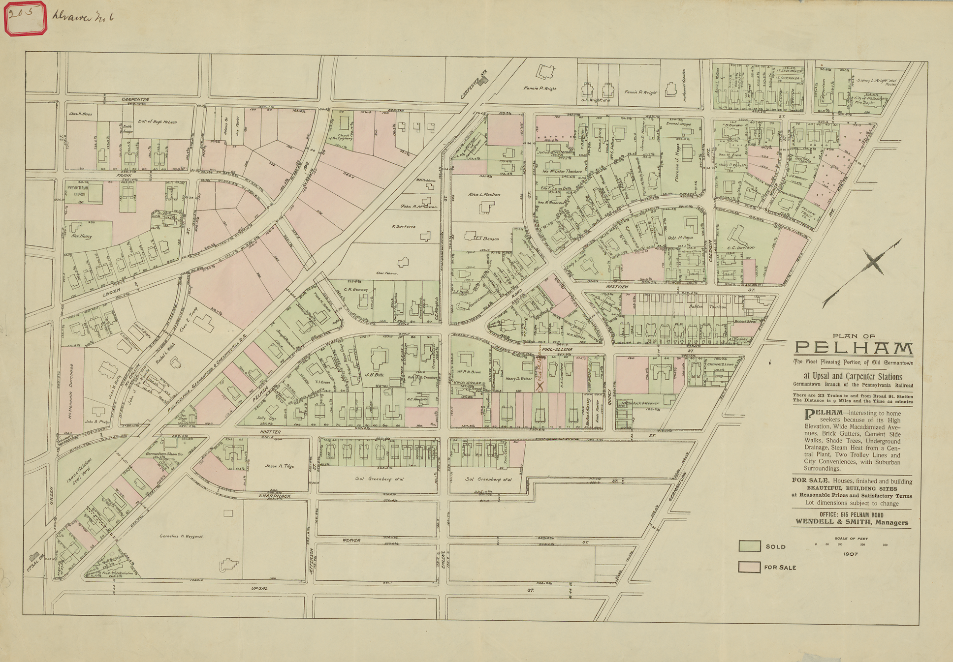 - The initial boundary for consideration is the 1907 map depicting the Pelham development. Over the past 40 years, fellow neighbors and historians, led by the work of former Pelham resident Lois Frischling, have refined that boundary to center on the length of Pelham Road and extending on either side to Carpenter Lane and Hortter Street. Historic research will determine the final boundary.